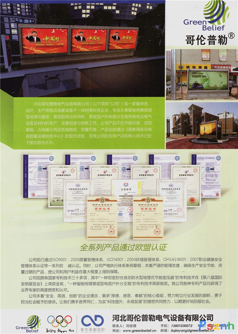 河北哥倫普勒電氣設備有限公司 智能傳媒景觀型地埋式箱變 景觀 型高壓環網柜 景觀型戶外電纜分支箱點擊:487 查看原圖![]() ![]() ![]() 聯系電話:400-019-0317 傳真:4007-019-0317 E_mail:greenbelief@greenbelief.cn
