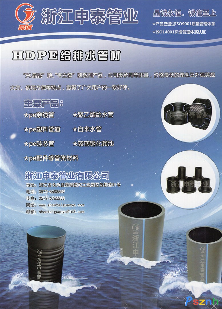 浙江申泰管業有限公司 pe穿線管_聚乙烯給水管_pe塑料管道點擊:967 查看原圖![]() ![]() ![]() 公司名稱: 浙江申泰管業有限公司