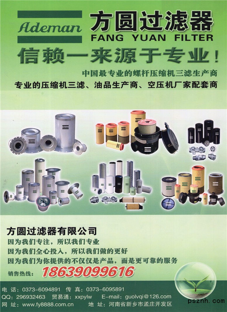 輝縣市方圓過濾器有限公司 濾清器 螺桿式 滑片式 噴油壓縮機 真空泵用油氣分離濾芯 過濾器 油濾器 東莞空壓機展點擊:1503 查看原圖![]() ![]() ![]() 聯系我們