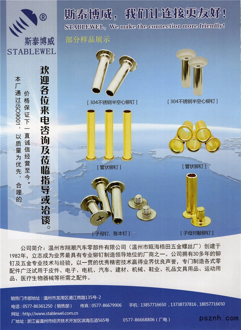 | 經營范圍: | 制造、加工緊固件、電器配件 | ||