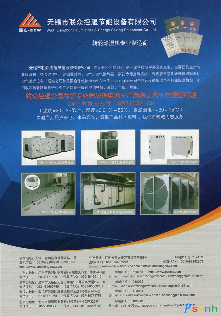 鋰電池新能源NMP廢氣處理設(shè)備_超低露點凈化空氣處理設(shè)備_控制大氣污染設(shè)備_除濕機_加濕機_能量回收器_深圳電池展-無錫市聯(lián)眾控濕節(jié)能設(shè)備有限公司