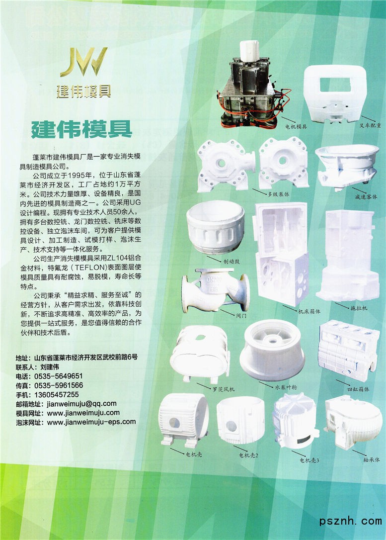 蓬萊市建偉模具廠 消失模白模 消失模模具 泡沫機械點擊:328 查看原圖![]() ![]() ![]() 地址: 山東省蓬萊市經濟開發區武校前路6號