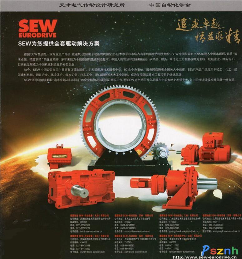 賽威傳動(中國)投資有限公司_大型工業減速機_變頻控制設備_伺服驅動控制技術_現場分散驅動點擊:1037 查看原圖![]() ![]() ![]() 德國獨資 SEW-傳動設備(天津)有限公司