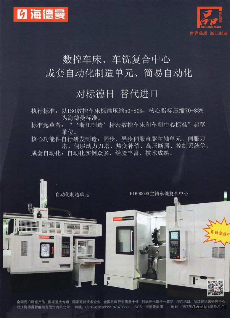 浙江海德曼智能裝備股份有限公司 成套自動化制造單元_柔性生產線_普及型數控車床點擊:568 查看原圖![]() ![]() ![]() 浙江海德曼智能裝備股份有限公司