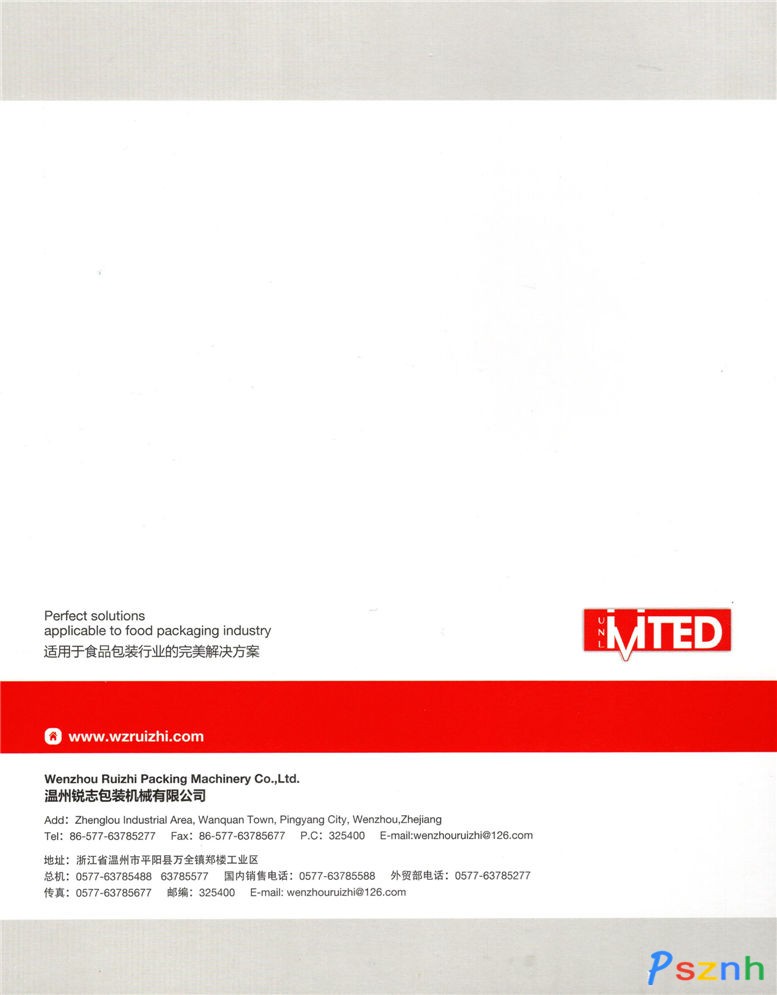 溫州銳志包裝機械有限公司_全自動紙袋機_塑料制袋機_尖底紙袋機_方底紙袋機_食品紙袋機_熱切制袋機點擊:850 查看原圖![]() ![]() ![]() 中國浙江省溫州市平陽縣萬全鎮鄭樓工業區