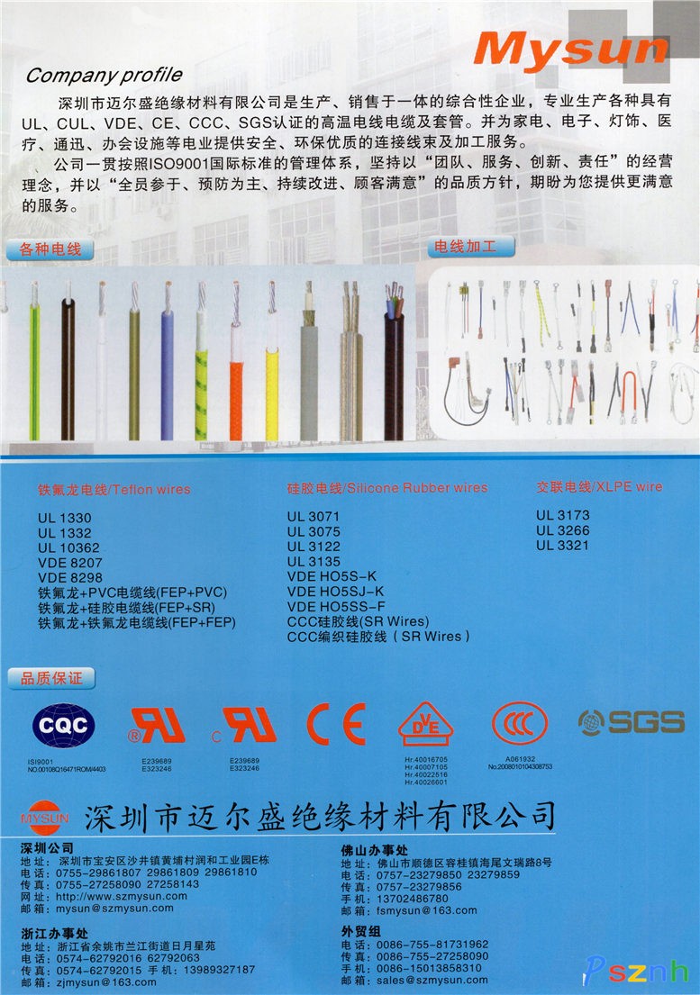 深圳市邁爾盛絕緣材料有限公司 硅膠電線電纜 氟塑料電線電纜 特種電線電纜