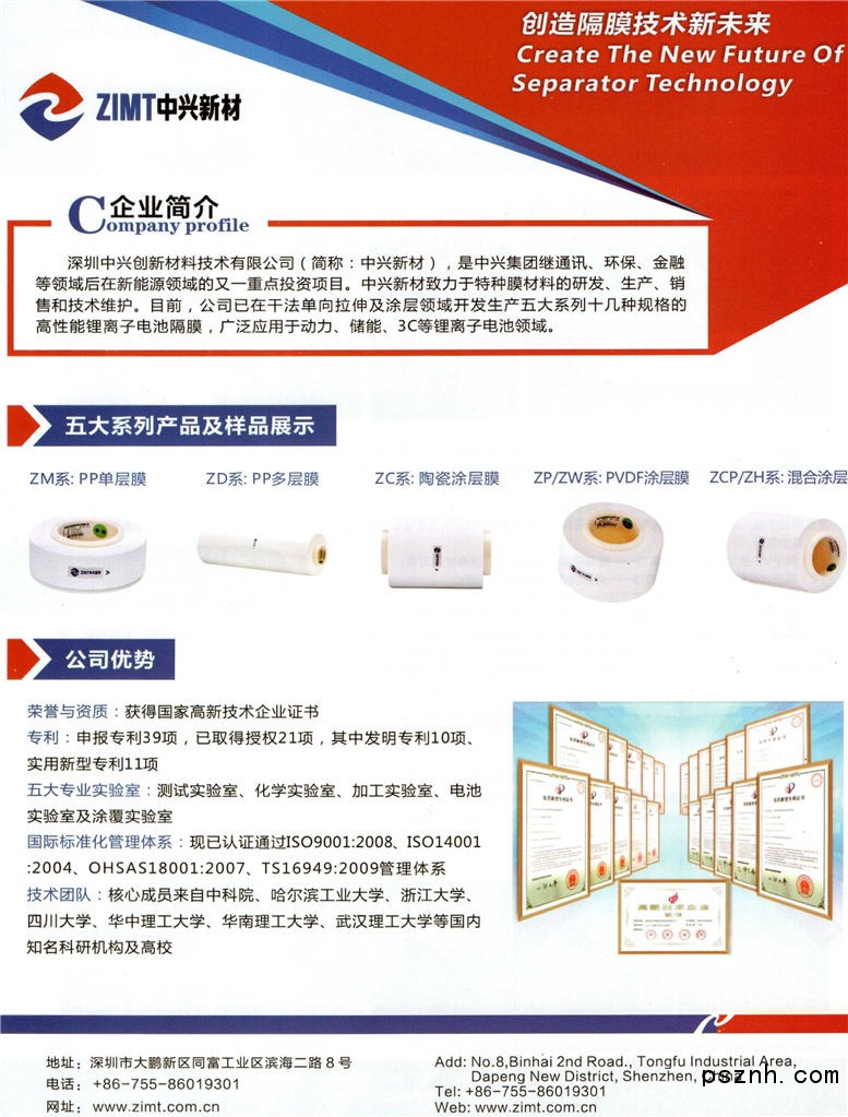 深圳中興創(chuàng)新材料技術(shù)有限公司 鋰離子電池隔膜 特種高分子膜材料 特種膜材料 干法單向拉伸及涂層 深圳電池展點(diǎn)擊:1467 查看原圖![]() ![]() ![]() 1、公司地址: