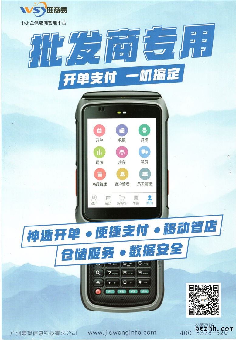 廣州嘉望信息科技有限公司 旺商易PDA開單一體機_線上線下全網支付結算_專業智能倉儲配送服務點擊:456 查看原圖![]() ![]() ![]() 客服1: 2594826231 服務熱線: 400-8338-520
