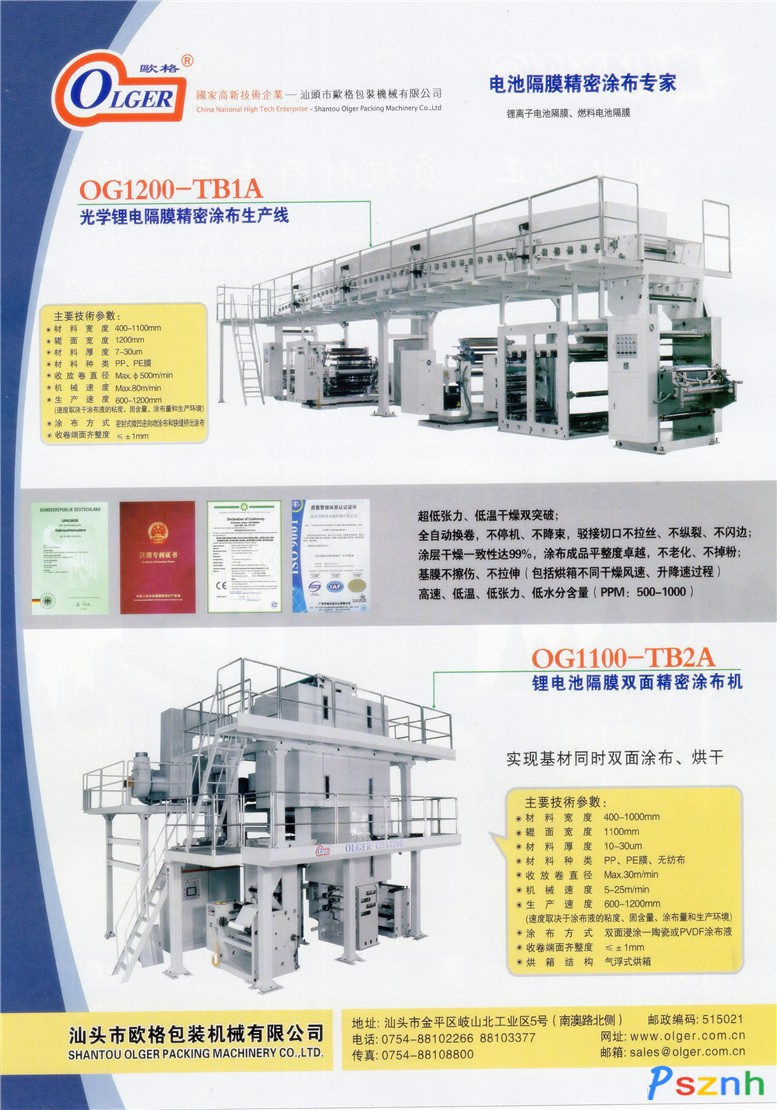 廣東歐格精機科技有限公司 衛星式柔版印刷機、光學級精密涂布