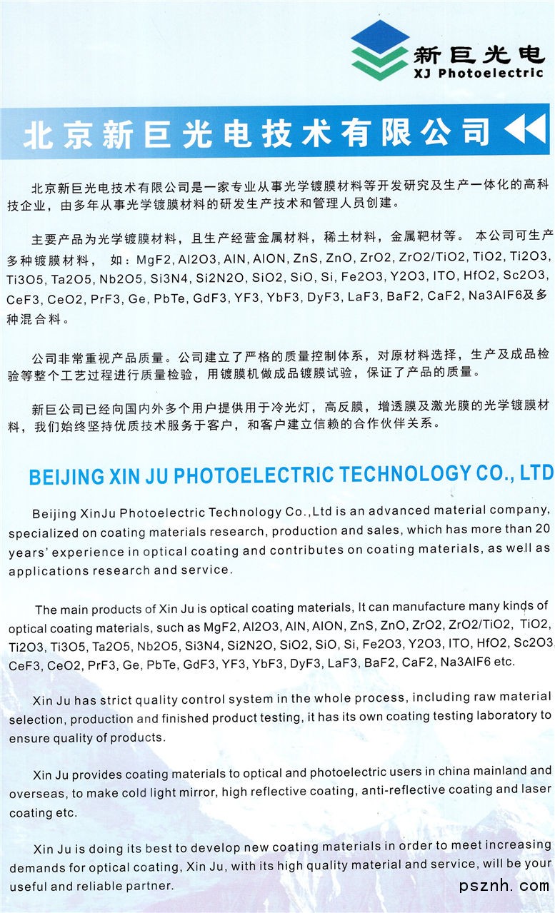 北京新巨光電技術有限公司 金屬材料_稀土材料_靶材點擊:581 查看原圖![]() ![]() ![]() 公司地址: