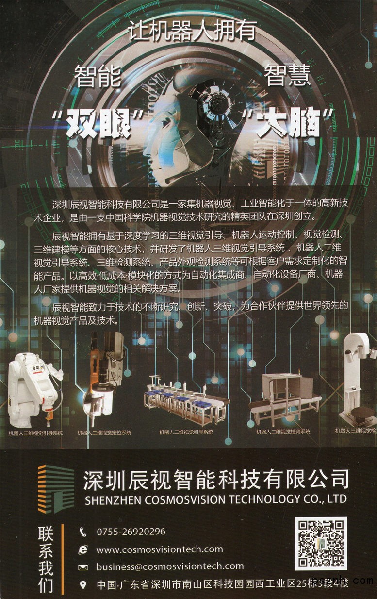 深圳辰視智能科技有限公司 三維視覺引導_機器人運動控制_視覺檢測點擊:934 查看原圖![]() ![]() ![]() 深圳辰視智能科技有限公司