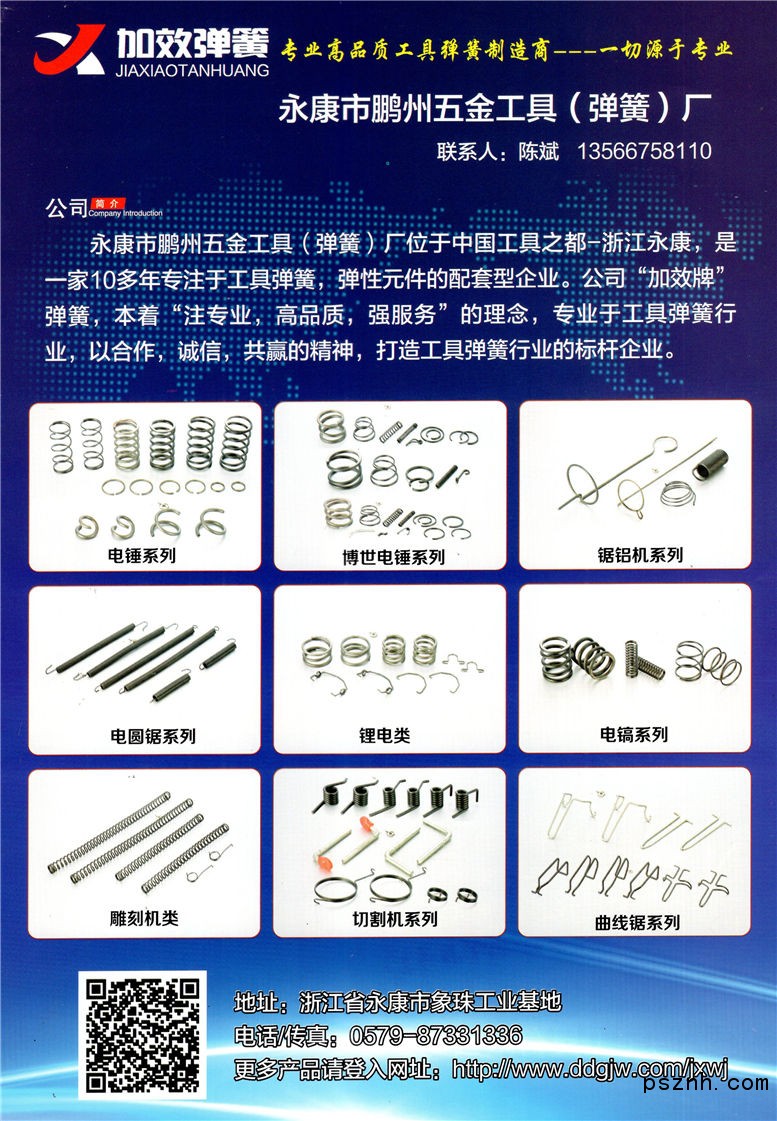 永康市鵬州五金工具廠 壓力彈簧_拉力彈簧_扭簧點擊:548 查看原圖![]() ![]() ![]() 工廠地址:
