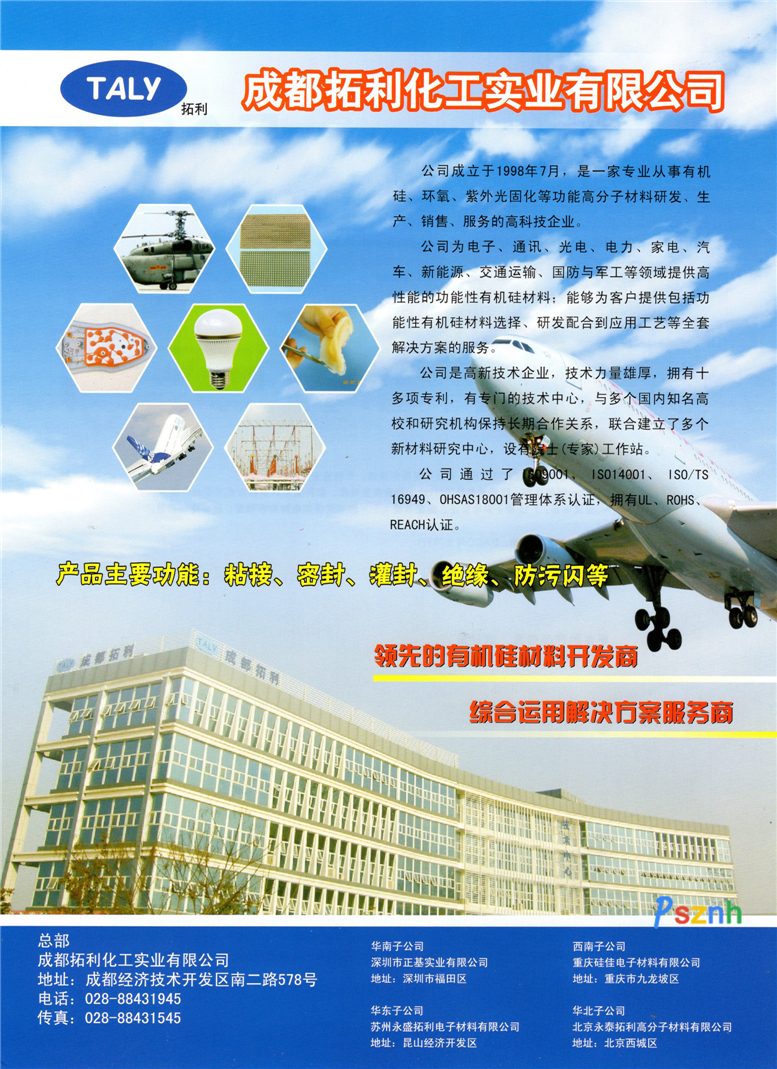 成都拓利科技股份有限公司 電子材料 高分子材料 有機硅 環氧點擊:709 查看原圖![]() ![]() ![]() 公司總部:成都拓利科技股份有限公司