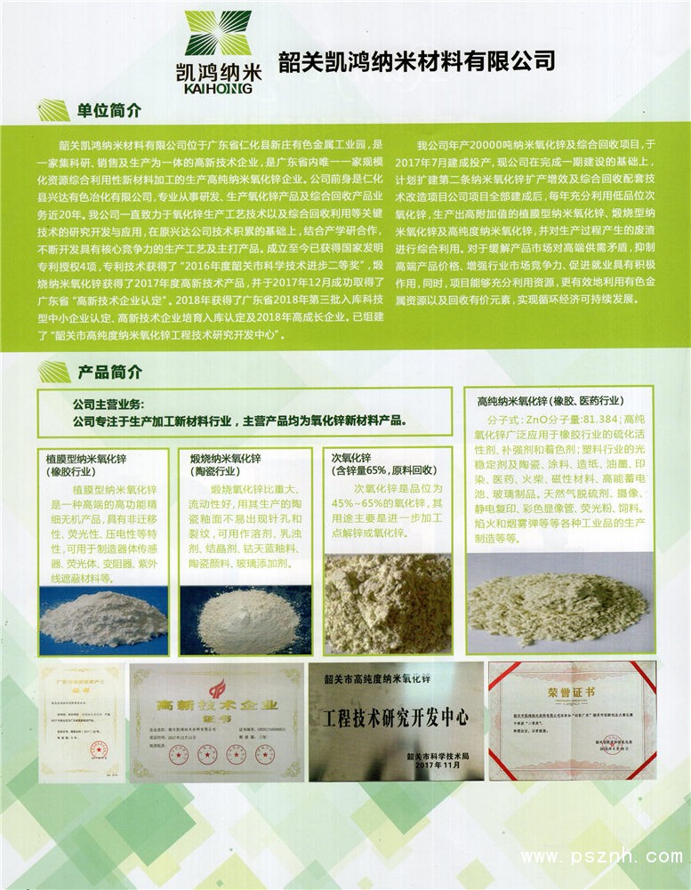 Shaoguan Kaihong Nano Materials Co.,Ltd http://www.khnano.com 地址:韶關市仁化縣周田新莊有色金屬工業園內 電話:0751-6342785 |
