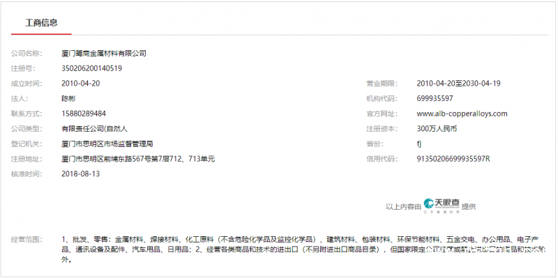| 公司名稱: | 廈門鷺商金屬材料有限公司 | ||