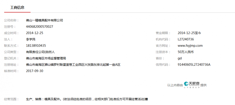| 經營范圍: | 生產、銷售:模具及配件。(依法須經批準的項目,經相關部門批準后方可開展經營活動)〓 | ||