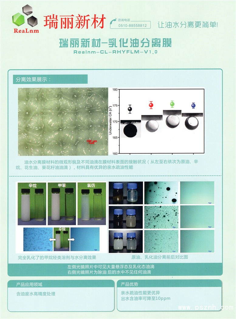 江蘇瑞爾麗新材料科技有限公司 新型油水分離原材料_包括分離海綿_親油分離膜點擊:711 查看原圖![]() ![]() ![]() 網址:www.ruiliem.com了解更多案例,觀看更多實拍視頻,請掃一掃公司微信服務號