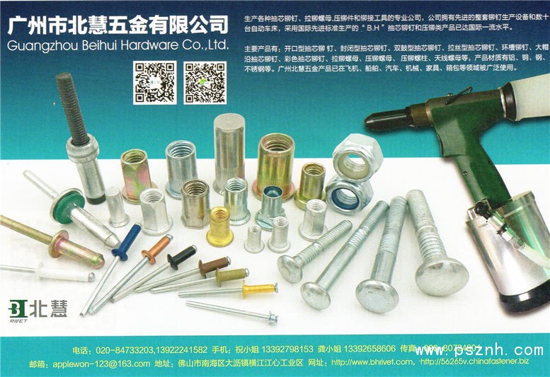 廣州市北慧五金有限公司 抽芯鉚釘_拉鉚螺母_壓鉚件