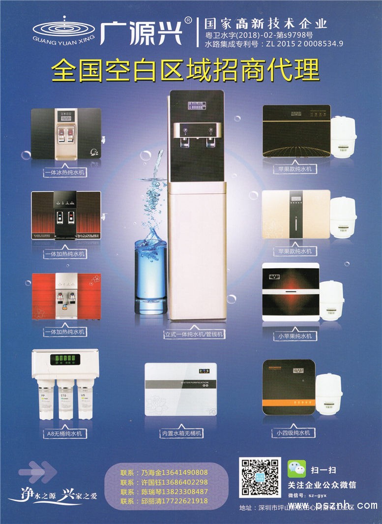 深圳市廣源興實業發展有限公司 家用RO系列 商用RO系列 大型RO系列 能量機系列 不銹鋼水臺 軟水機系列 管線機系列 濾芯系列 配件系列點擊:668 查看原圖![]() ![]() ![]() 深圳市廣源興實業發展有限公司