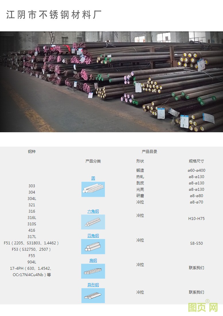江陰市不銹鋼材料廠-不銹鋼冶煉、鍛造、鑄造、熱軋、冷精棒材和型鋼點(diǎn)擊:425 查看原圖![]() ![]() ![]() 簡(jiǎn)介: