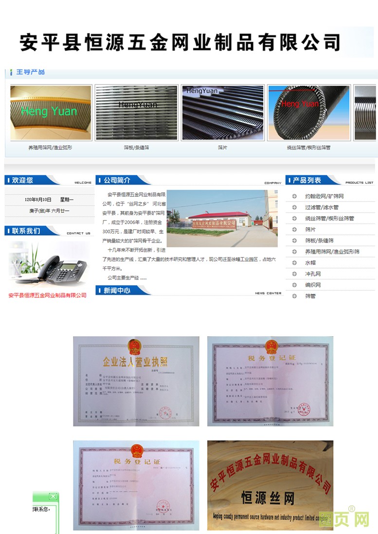 安平縣恒源五金網(wǎng)業(yè)制品有限公司,位于全國著名的“絲網(wǎng)之鄉(xiāng)” 河北省安平縣,其前身為安平縣礦篩網(wǎng)廠,成立于2006年,注冊資金300萬元,是建廠時間較早、生產(chǎn)銷量較大的礦篩網(wǎng)骨干企業(yè)。