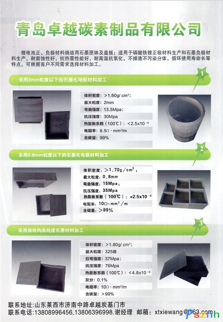 石墨模具_高純石墨_鱗片石墨_磷酸鐵鋰燒結用石墨匣缽_玻璃器皿用石墨_鋰電池用球形石墨粉_光伏用石墨-青島卓越碳素制品有限公司點擊:2735 查看原圖![]() ![]() ![]() 劉桂波