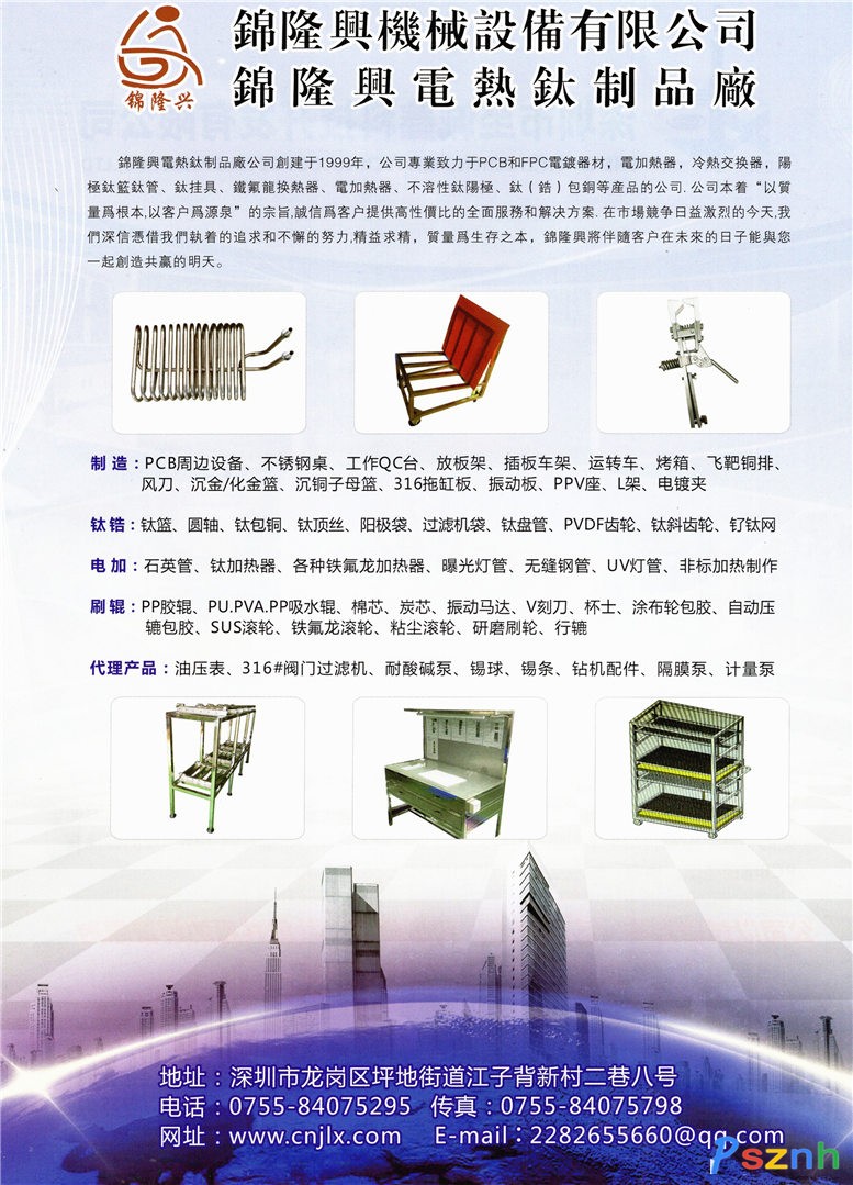 線路板電鍍掛具_PCB耗材_不銹鋼制品_鈦制品-深圳市錦隆興五金制品有限公司點擊:2426 查看原圖![]() ![]() ![]() 地址:深圳市坪地江子背新村二巷八號