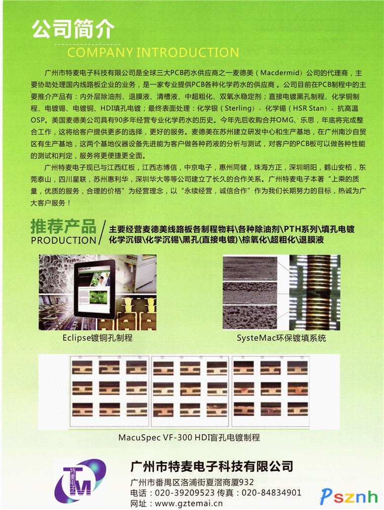 廣州市特麥電子科技有限公司 _超粗化_除油劑_退膜水_脈沖電鍍點擊:1432 查看原圖![]() ![]() ![]() 電話:020-39209523