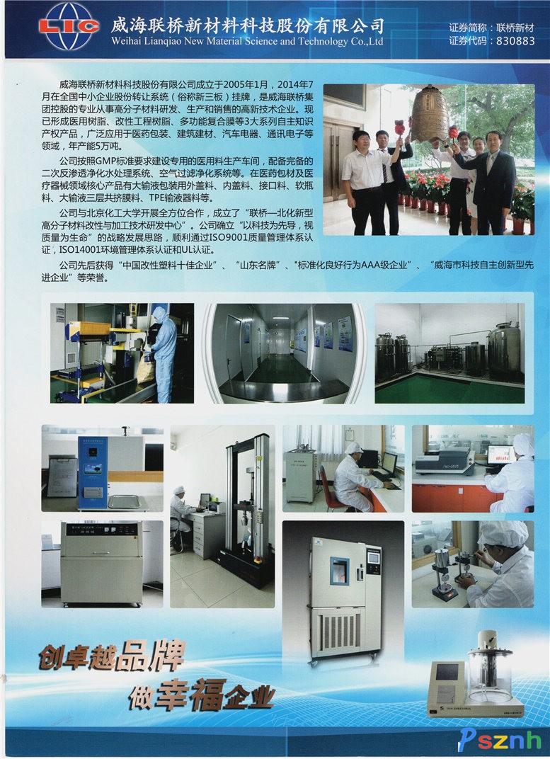 威海聯橋新材料科技股份有限公司 醫用樹脂 外蓋料 接口料 軟瓶料點擊:1373 查看原圖![]() ![]() ![]() Tel:(0631) 5621226 5628880 Fax:(0631)5696138