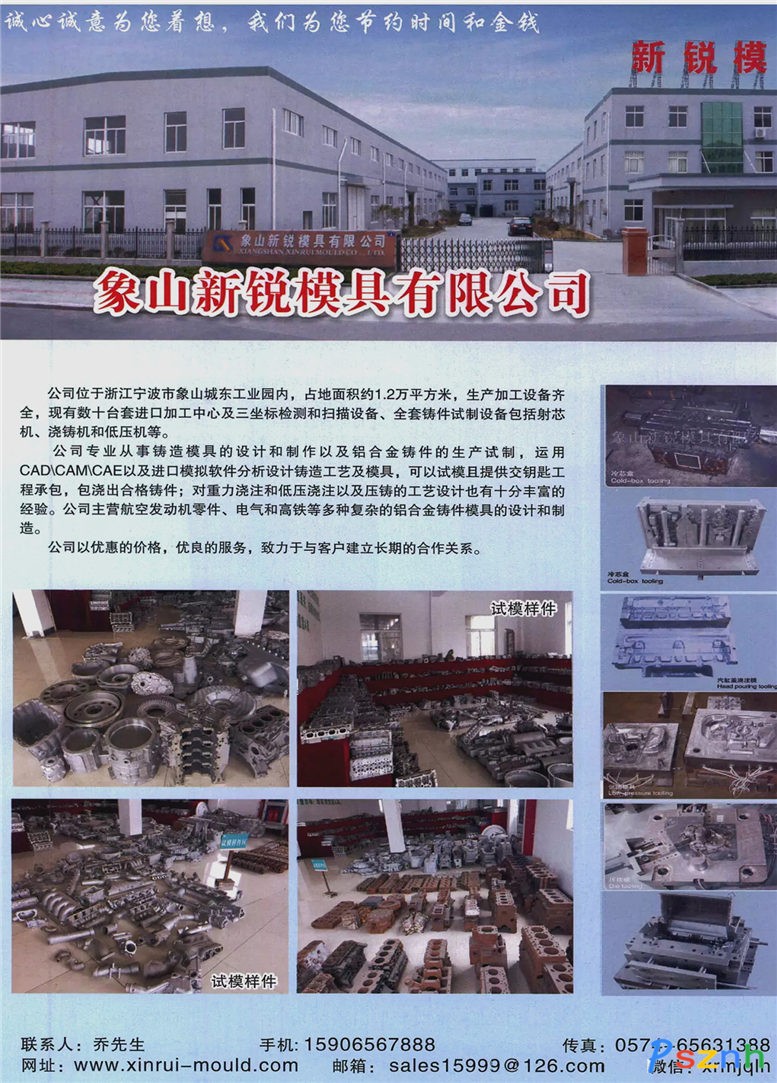 象山新銳模具有限公司 砂型鑄造模具 重力澆注模具 低壓澆注模具 消失模模具點擊:533 查看原圖![]() ![]() ![]() 公司名稱: 象山新銳模具有限公司