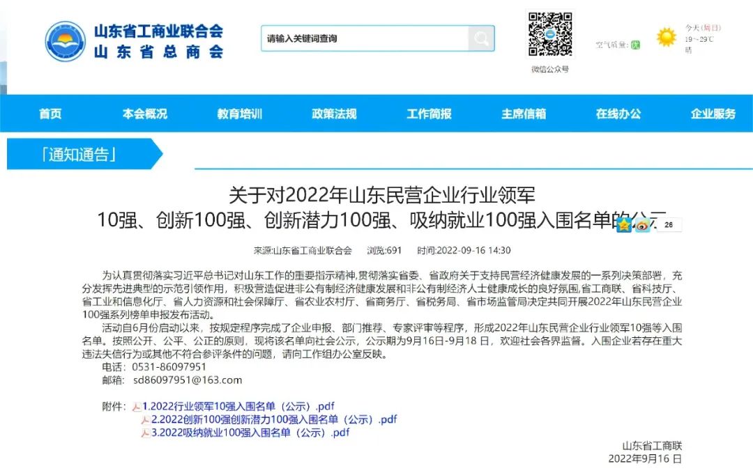 活動(dòng)自6月份啟動(dòng)以來(lái),省工商聯(lián)、省科技廳、省工業(yè)和信息化廳、省人力資源和社會(huì)保障廳、省農(nóng)業(yè)農(nóng)村廳、省商務(wù)廳、省稅務(wù)局、省市場(chǎng)監(jiān)管局共同開(kāi)展2022年山東民營(yíng)企業(yè)100強(qiáng)系列榜單申報(bào)發(fā)布活動(dòng)并按規(guī)定程序完成了企業(yè)申報(bào)、部門(mén)推薦、專(zhuān)家評(píng)審等程序,形成了此次的入圍名單。