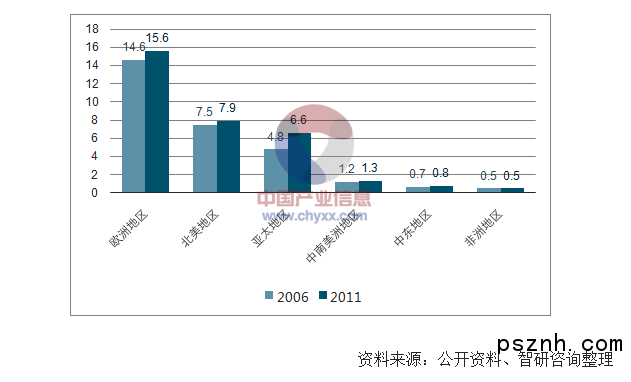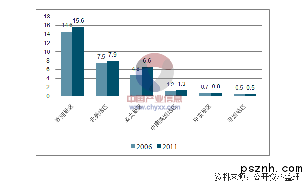 一國會展業實力及發展水平與該國綜合經濟實力、經濟總體規模及其發展水平相對應,發達國家憑借各個方面的優勢在會展業中處于主導地位并向世界各地擴張。作為世界會展業的發源地,歐洲會展業整體實力及規模均最強大,德國等歐洲國家相繼成為世界知名的會展強國。北美地區是世界會展業的后起之秀。亞洲會展業規模和水平僅次于歐美,強于拉美和非洲;日本、新加坡、阿聯酋和中國憑借其巨大的經濟發展潛力、發達的基礎設施、較高的服務業水平及較為有利的地理區位優勢,成為亞洲的會展業發達國家。拉美、非洲等區域則因為經濟總量規模相對較小或發展較滯后,會展業規模相對較小。全球會展市場集中在歐洲、北美及亞太地區,上述區域市場份額合計達到92%。2006 至2011 年,亞太地區會展面積從4.8 百萬平方米增長38%至6.6 百萬平方米,市場份額上升了4%,成為全球會展市場增長最快的地區。