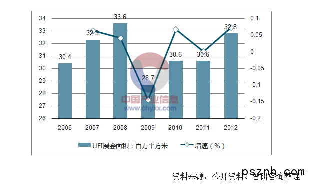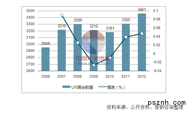 受益于各國政府的推動作用,以及宏觀經濟各個行業對會展服務的需求不斷深化,會展行業總體規模不斷提升。據統計,2006 年至2012 年UFI認證會員舉辦的會展數量由2,949 場增加至3,461 場,會展面積由30.4 百萬平方米增加至32.8 百萬平方米。受經濟危機影響,2009 年及2010 年全球展會數量及面積出現大幅下滑。2011 年后,隨著全球宏觀經濟逐漸復蘇,會展行業的景氣度開始回升并恢復增長態勢。2006 年至2012 年UFI 展會數量及會展面積的變化趨勢具體如下: