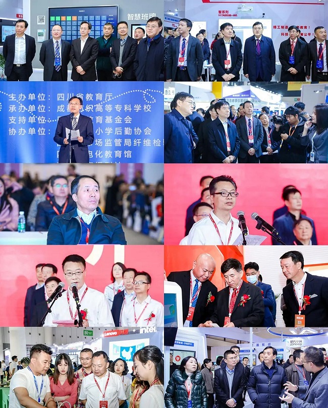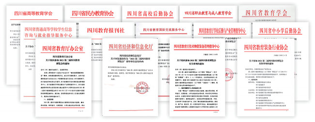 (時任四川省教育廳廳長李江,四川省教育廳副廳長崔昌宏,四川省委教育工委副書記、教育廳黨組成員張瀾濤,教育部關心下一代工作委員會常務副主任、中國教育裝備行業協會原會長王富,四川省教育廳一級巡視員胡衛鋒,四川省教育廳二級巡視員王羽,四川省經濟和信息化廳二級巡視員蘇平,四川省教育裝備行業協會會長張林祥,四川省學校國有資產與教育裝備中心主任王方文,四川省教育信息化與大數據中主任劉漢濤出席歷屆四川教博會)