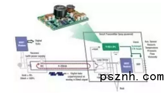 圖3:使用DSP和HART調制解調器可以讓多個傳感器的信號整合并以數字形式通過4-20mA環路。這些器件由創新的電流增壓器供電,跟傳統的線性穩壓器相比,增壓器能夠從環路中汲取三倍的功率。