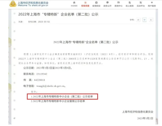 202332日上海市經濟和信息化委員會發布了《2022年上海市“專精特新”