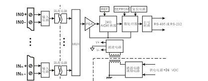 產品內部包括電源隔離,信號隔離、線性化,A/D轉換和RS-485串行通信等功能模塊。每個串口最多可接256只ISOAD系列模塊,通訊方式采用ASCII碼字符通訊協(xié)議或MODBUS RTU通訊協(xié)議,其指令集兼容于ADAM模塊,波特率可由用戶設置,能與其他廠家的控制模塊掛在同一RS-485總線上,便于主機編程。