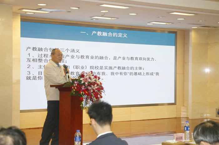 在大會的主旨演講環節,廣東省產教融合促進會歐陽農躍主任對中國和廣東產教融合政策環境作了分析報告。