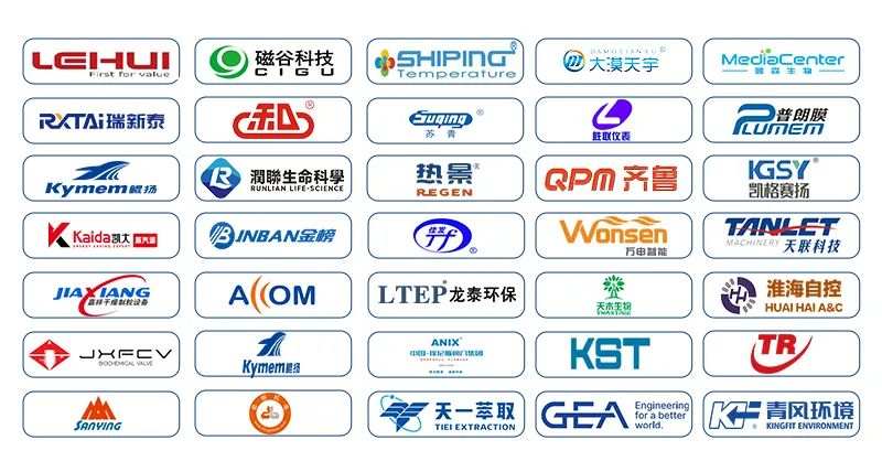 豐尚集團、安琪酵母、凱大、山東歐邁、華恒生物、梅花生物、東富龍、青風環境、南京磁谷、山東天瑞、GEA、浙江天聯、上海佳力士、天長遠安、山東歐瑞安、科濾環境、金鑫生化、華鼎機械、匯森生物、安拓思、浙江興沃、江蘇科海、上海豫諾、天俱時、東邦機械、康賽特、上海保興、天一萃取、常州三高、瑞新泰、上海數郜、蘇州佳電、金太陽、潤聯環保、歐尚元、三櫻流體、上海遠安、百侖生物、漢凰科技/漢邦科技、諾華賽、一鳴過濾、齊魯包裝、普朗膜、黑龍江勞力、洛瑞思、康達新能源、藍旺節能、巨能機械等等。