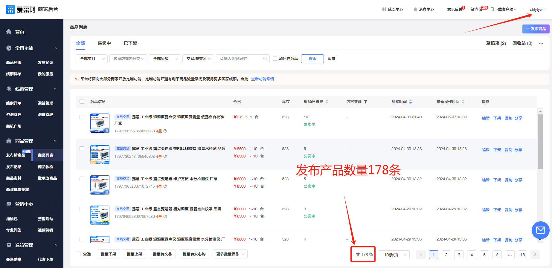 第二張圖片:2年的愛采購店鋪我們幫助客戶設(shè)計主圖、詳情頁、視頻,然后發(fā)布到上線,一共發(fā)布了178條產(chǎn)品信息。