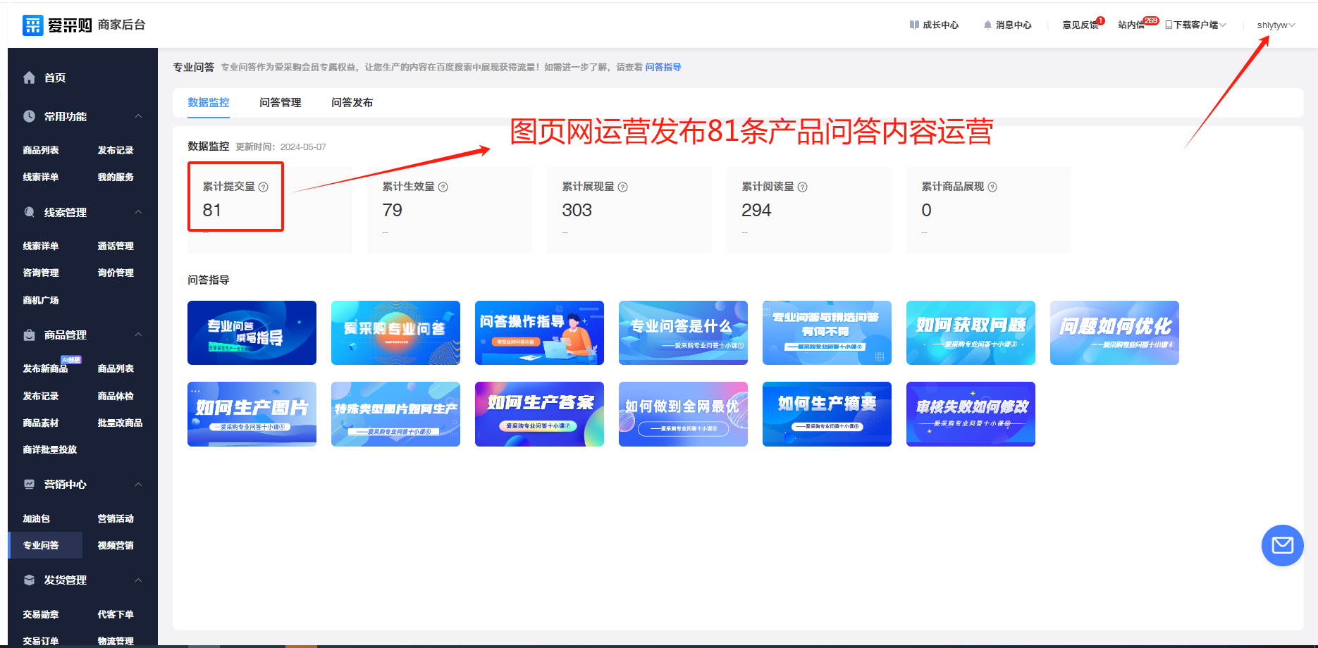 第三張圖片:2年的愛采購店鋪我們幫助客戶寫了81條專業(yè)問答,累計展現(xiàn)量為303次,累計閱讀量為294次。