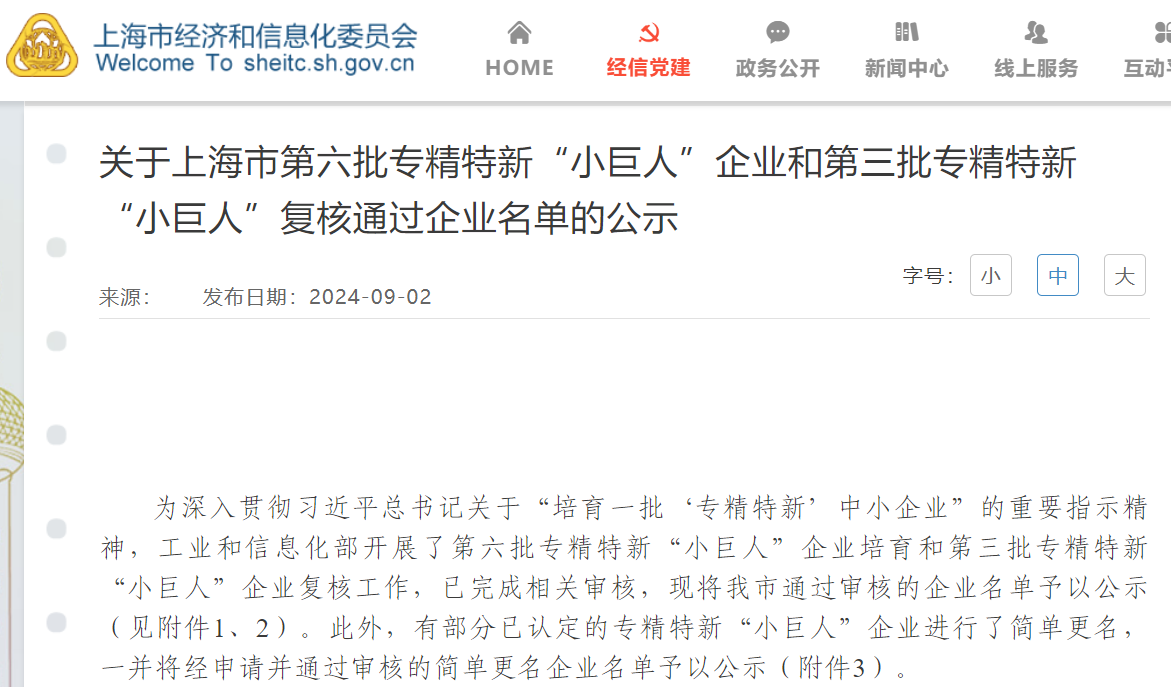 近日,國家工業和信息化部開展了第六批專精特新“小巨人”企業培育和第三批專精特新“小巨人”企業復核工作,上海肯特于2021年榮獲國家專精特新“小巨人”企業榮譽稱號,三年來憑借卓越的創新實力和穩健的發展態勢,成功通過復核并予以公示。
