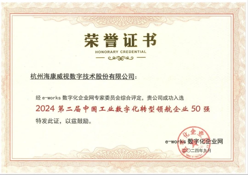 近日,杭州海康威視數字技術股份有限公司(以下簡稱“海康威視”)成功入選“第二屆中國工業數字化轉型領航企業50強”。