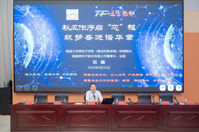 9月25日晚,南通大學微電子學院(集成電路學院)2024級新生開學典禮隆重舉行,257名新生開啟人生新征途。典禮由微電子學院(集成電路學院)黨總支副書記、副院長盧玉軍主持。南通大學微電子學院(集成電路學院)特聘院長,通富微電董事長、總裁石磊受邀出席典禮。