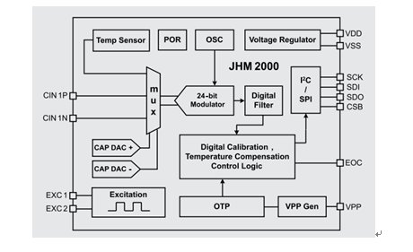 針對電容式傳感器的高精度信號調(diào)理芯片JHM2000