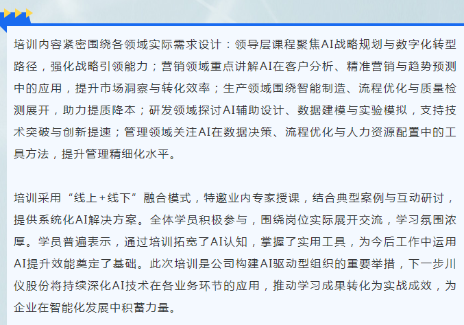 川儀股份舉辦“AI應用全員賦能”專題培訓