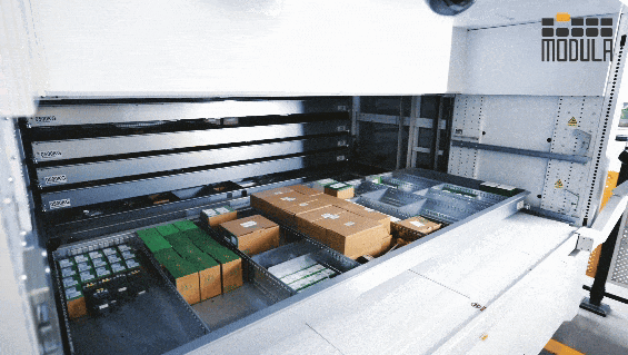 Modula智能升降貨柜被部署在生產(chǎn)中樞位置,專門(mén)管理那些高頻使用而數(shù)量繁雜的零部件,比如緊固件、門(mén)窗連接件、電控單元、小型五金件和工裝夾具。 這些過(guò)去散亂堆放在線邊物料架上的物料,如今被集中管理,隨用隨取。