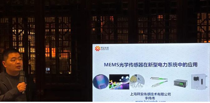 上海拜安傳感技術有限公司智能事業部李偉偉展示了《MEMS 光學傳感器在新型電力系統中的應用》。MEMS 光學傳感器憑借小型化、低功耗、高集成度的優勢,已在特高壓輸變電設備絕緣監測、新能源發電功率預測、儲能電站氣體監測等場景實現規?;瘧?,成為新型電力系統傳感技術升級的重要方向。