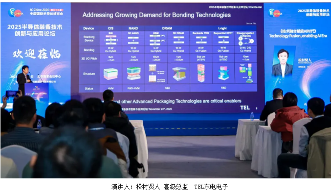 Technology Fusion, enabling AI Era(TEL東電電子)高級總監(jiān)松村賢人(Norito Matsumura)發(fā)表了題為《技術(shù)融合賦能AI時(shí)代》精彩演講:TEL 技術(shù)賦能 AI 的核心優(yōu)勢---TEL 是全球少數(shù)能提供光刻、刻蝕、沉積、清洗四大核心工藝設(shè)備的供應(yīng)商,為 AI 芯片制造商提供一站式解決方案,降低技術(shù)整合成本,縮短上市時(shí)間。