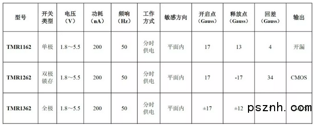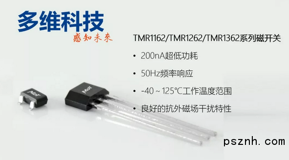 中國江蘇省張家港市2018年8月9日電 江蘇多維科技有限公司(MultiDimension Technology Co., Ltd., MDT)日前推出納安級超低功耗、高頻率響應和寬溫區的TMR1162/TMR1262/TMR1362系列磁開關傳感器,其主要特點包括,200nA超低功耗,50Hz頻率響應,-40~125℃的工作溫度范圍,良好的抗外磁場干擾特性,SOT-23或TO-92或LGA封裝。